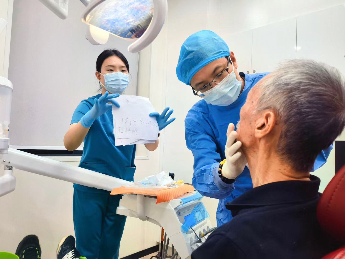 ↑深圳善貝口腔幫助雙耳失聰老人種好半口牙齒↑
